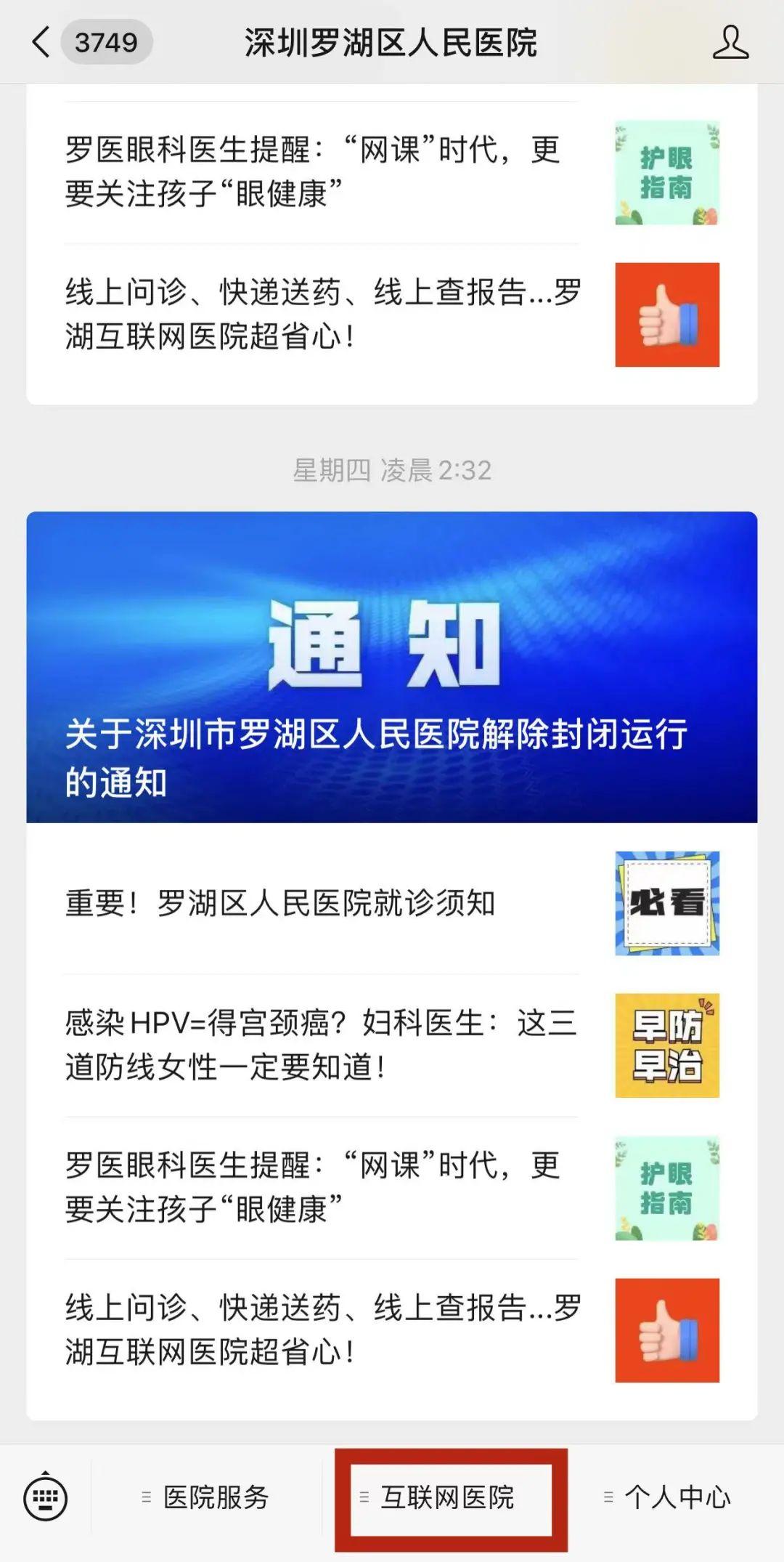 ▲服务号“深圳罗湖区人民医院”提供互联网医院服务