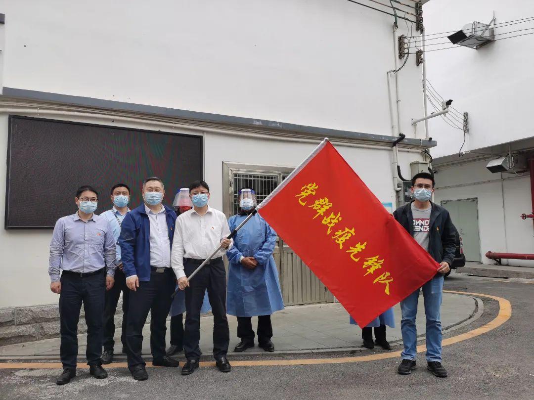 为城管局碧眼社区工作队代表授予战疫先锋队队旗