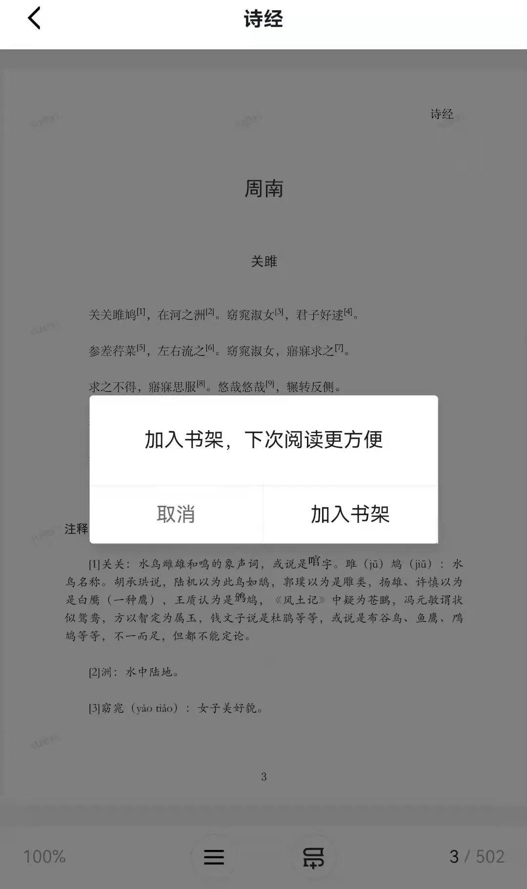 ③没读完也不用担心,点击“加入书架”,下次可以继续阅读。
