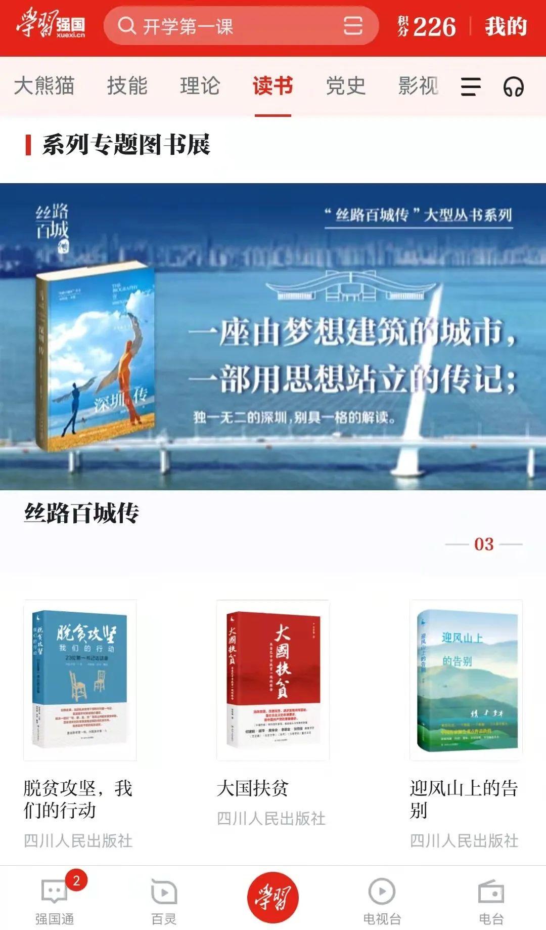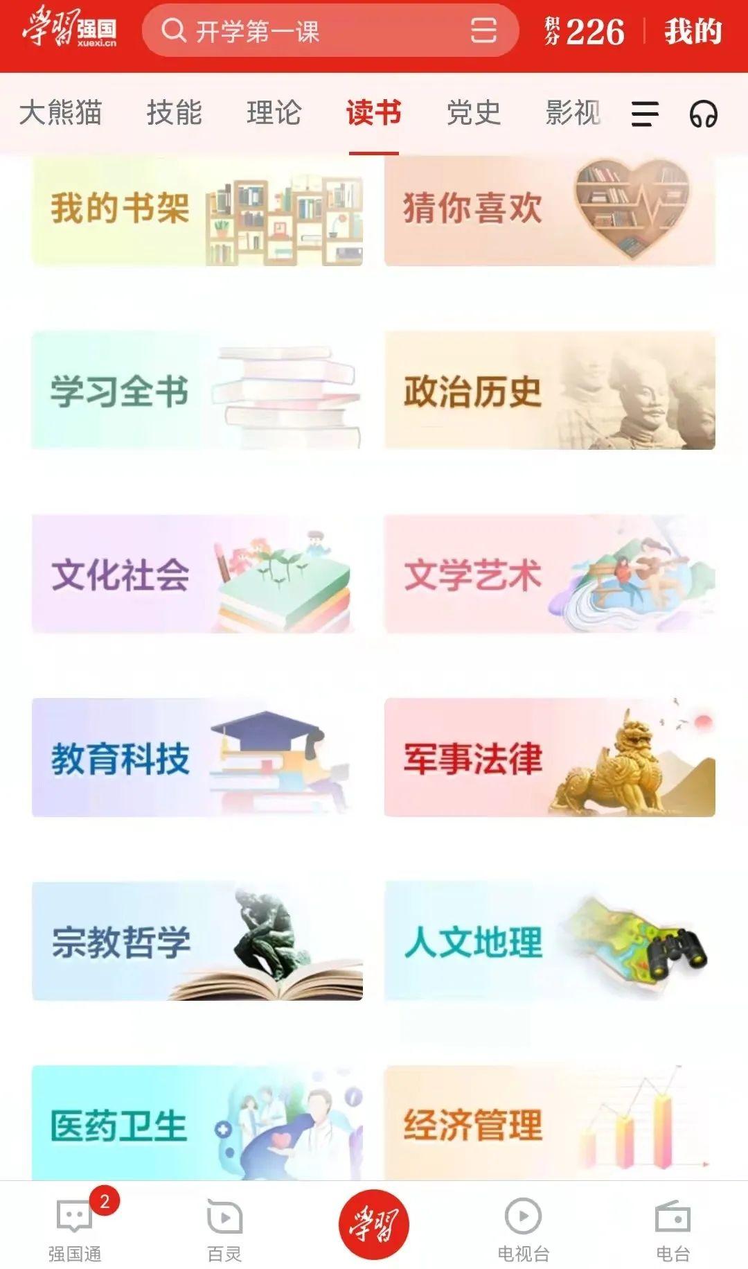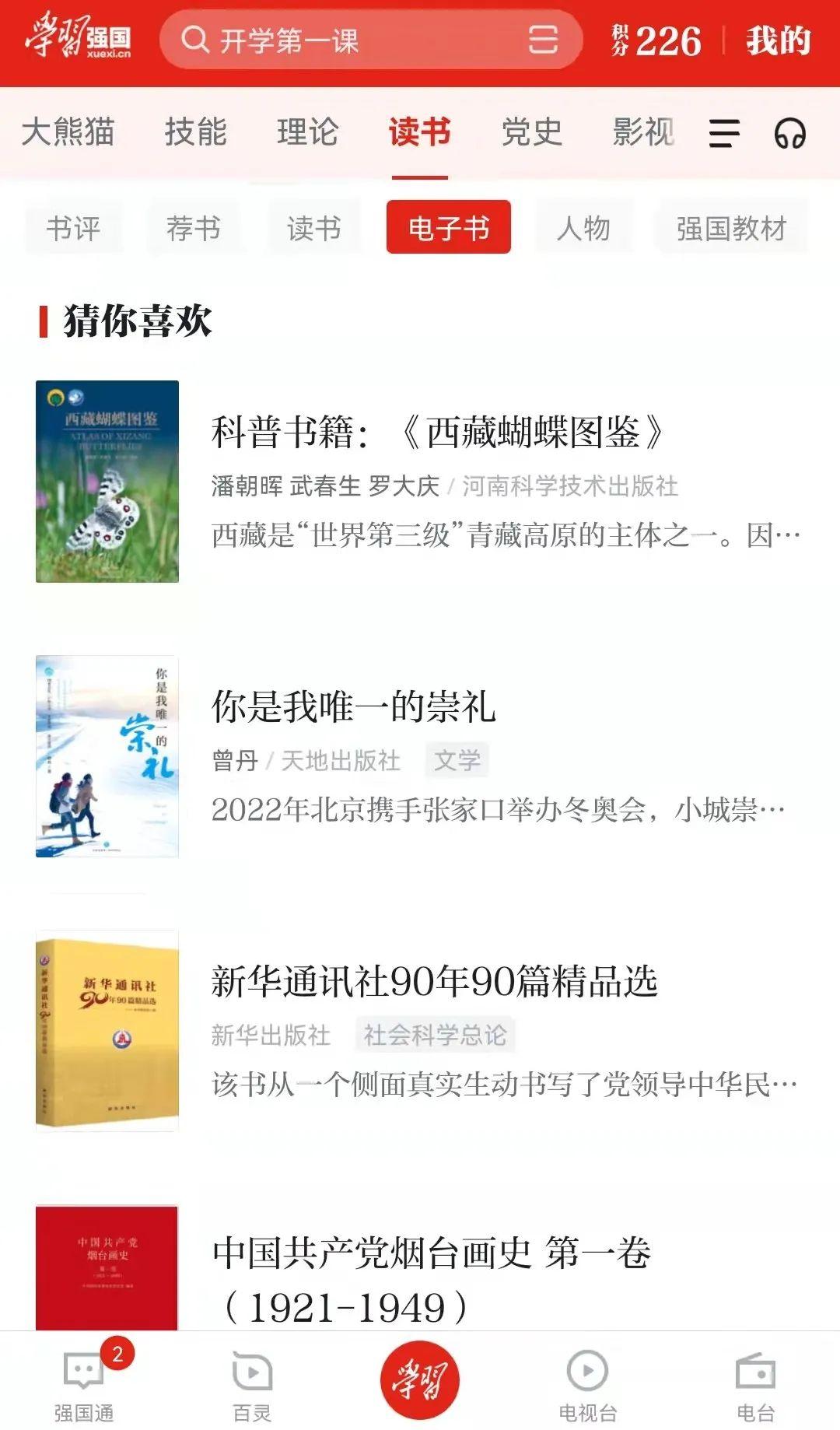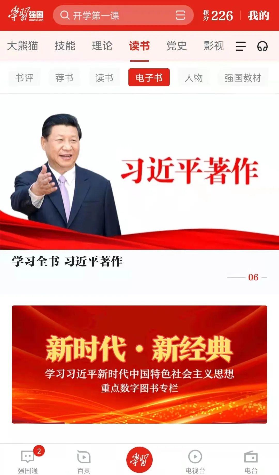 1打开“学习强国”APP,点击“读书”—“电子书”