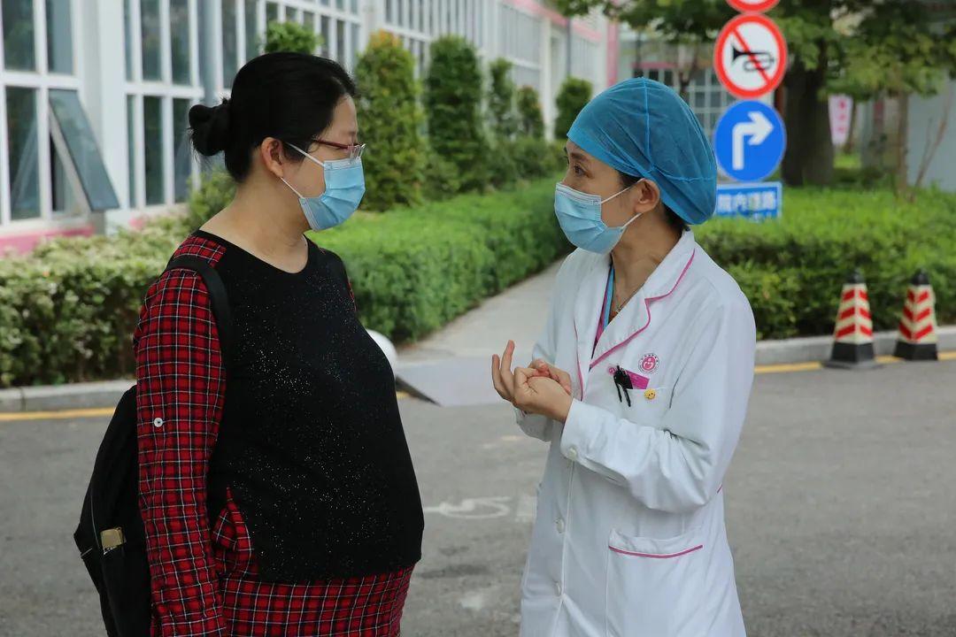 在护士全程陪护下,陈女士在“防范区关爱门诊”顺利完成了产检,孕产保健部主任吴春凤为她耐心讲解了产前注意事项。