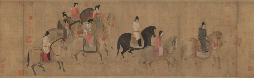 《虢国夫人游春图》,唐代画家张萱的画作,再现唐玄宗的宠妃杨玉环的三姊虢国夫人及其眷从盛装出游,"道路为(之)耻骇"的典型环境。此画重人物内心刻画,通过劲细的线描和色调的敷设,浓艳而不失其秀雅,精工而不板滞。