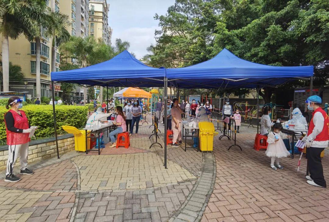 针对服务封闭管理区、围合区外的民生保障行业从业人员,横岗街道在多个片区设立专门检测点,为外卖、快递等民生保障相关行业的从业人员提供方便快捷的检测服务。