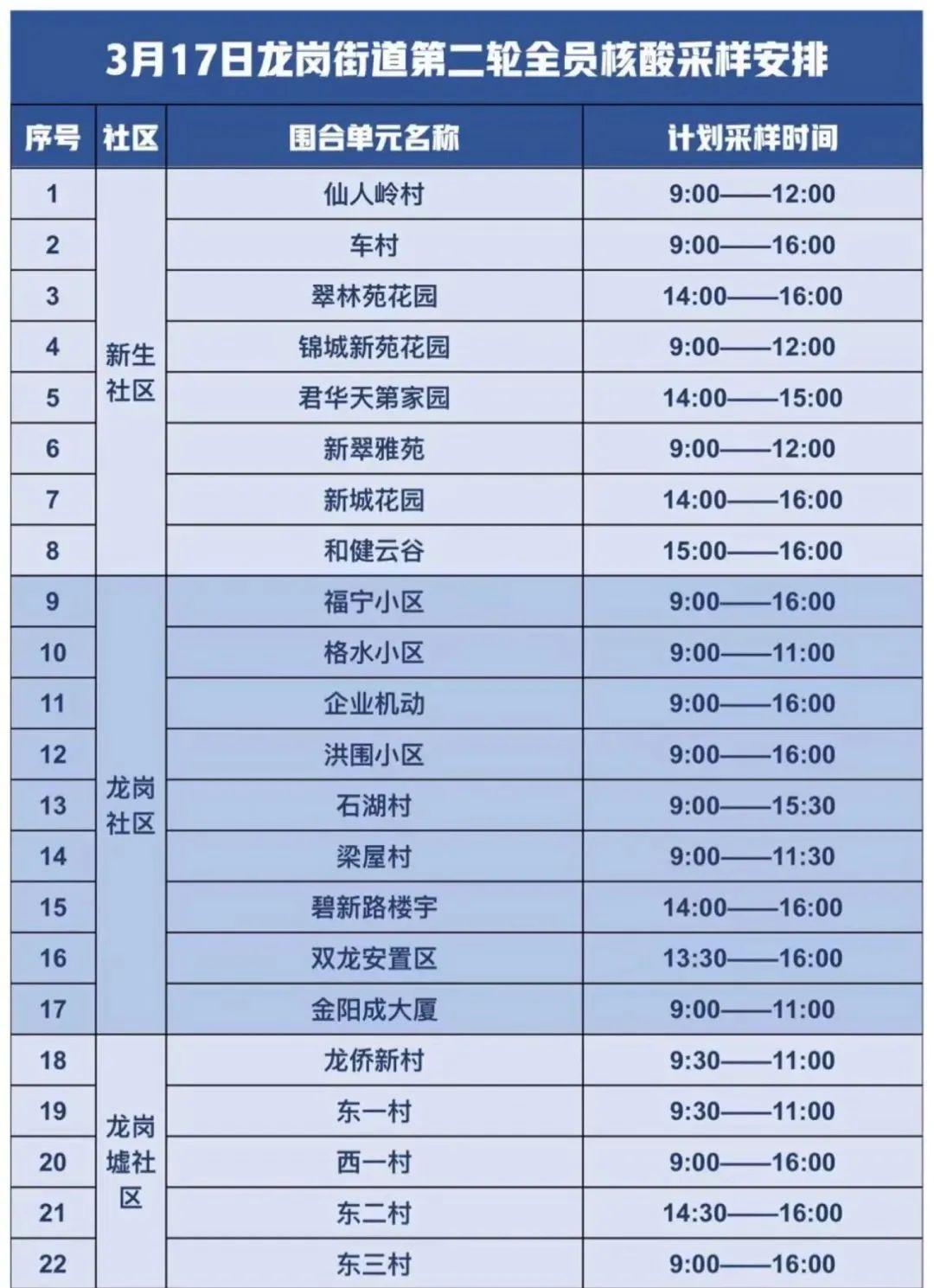 3月16日0时后未做核酸检测的龙岗街道全体居民,所有人应检尽检。