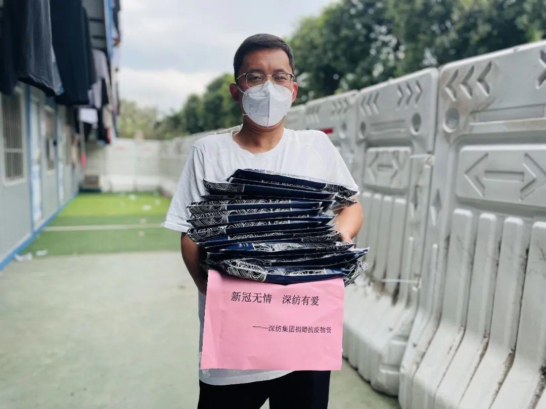 我们之所以选择捐赠速干衣,是因为根据实际情况考虑到抗疫一线突击队队员们的实际需求,希望这些速干衣能给他们在炎热的天气下带来一丝清凉,让他们能够工作得更轻松一些。当然,疫情当前,深纺集团作为国企,理所应当展现国企担当,助力深圳抗疫,与抗疫一线工作者站在一起。