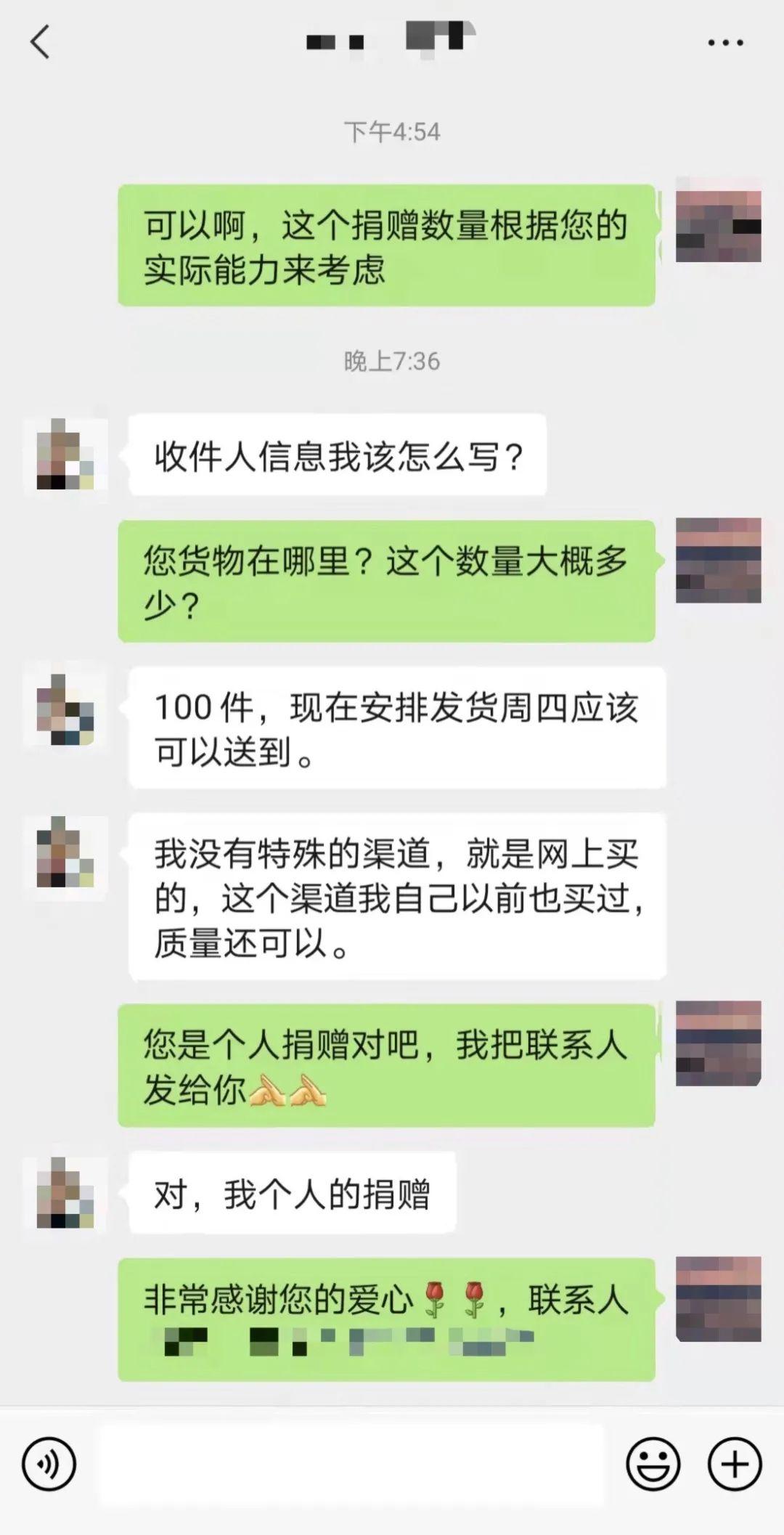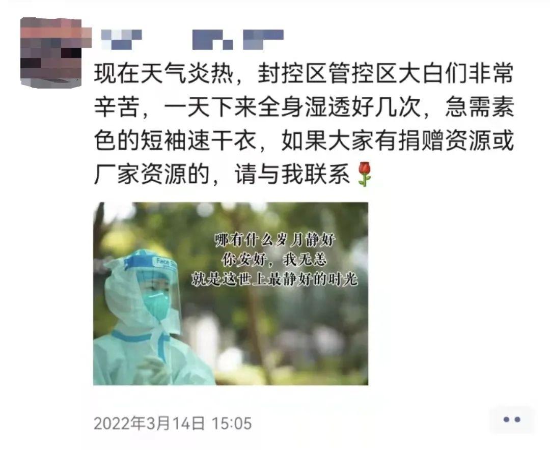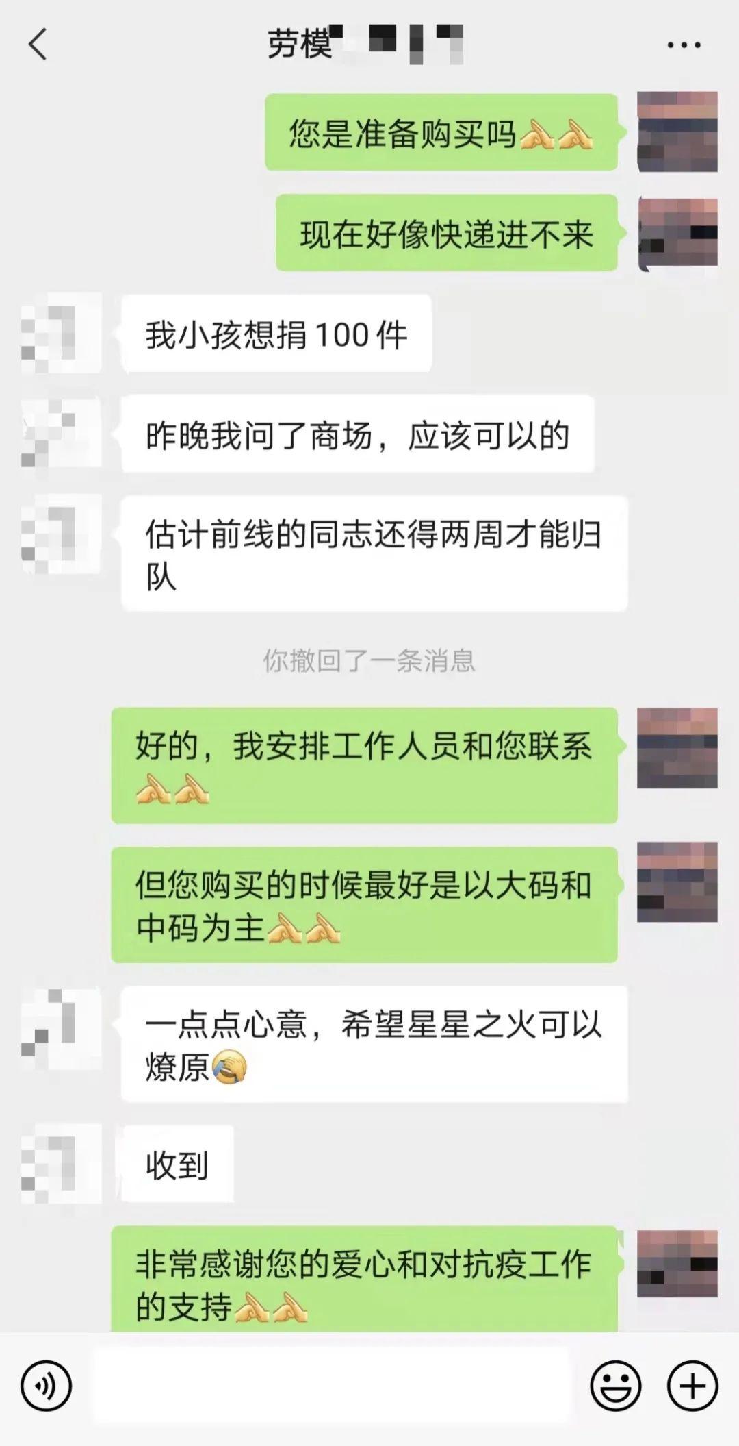 通过一些视频,我们了解到支援抗疫一线的工作人员非常辛苦,就想通过一些渠道为他们提供绵薄之力。正好,我们的一个客户给我们发来了一张朋友圈截图,得知市总工会正在募捐速干衣支援抗疫一线,便立即捐赠了950件速干衣,希望抗疫一线的工作者在照顾我们的同时也能够好好照顾自己。