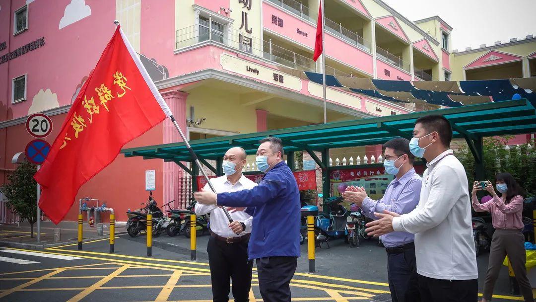 3月16日下午,光明区群团工作部部长王建荣,光明区委组织部副部长苏亨数在光明区公明街道上村社区上辇C区核酸检测点授予光明建工“党群战疫先锋队”旗帜,对光明建工疫情期间展现的国企担当给予了充分肯定,并嘱咐志愿者们一定要在做好个人防护的前提下开展服务工作。受光明建工集团董事长王斌同志委托,集团董事会主席鄞泽建、副总经理龙恒锋作为代表接受授旗。