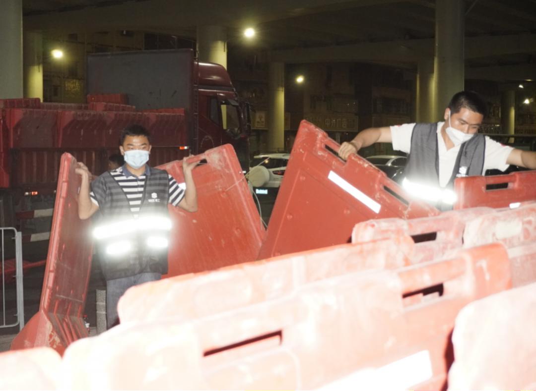 3月15日晚,一通紧急电话拉开了光明建工人新一轮的抗疫序幕。接光明区工务署紧急通知,需要调拨物资支援马田街道第二天的核酸检测工作。光明建工迅速响应,在满足防疫要求的前提下,第一时间集结35名员工,调配1000个水马,6辆平板车,连夜将防疫物资运抵马田街道相应社区,从晚上12点开始到凌晨5点完成所有任务,确保3月16日街道全员核酸检测工作正常、有序开展。“我们早已做足了充分的准备,就等待着命令!召即来、来能战,这就是光明建工人!”现场负责人石成定如是说。