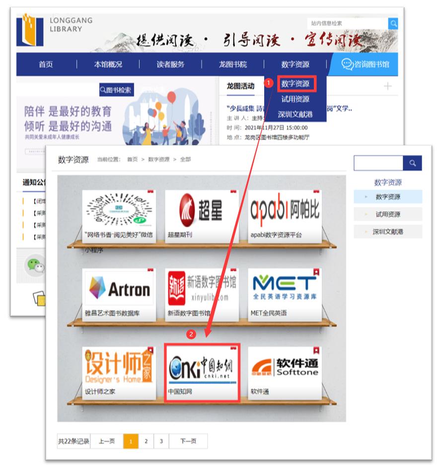http://www.szlglib.com.cn/进入龙岗区图书馆首页