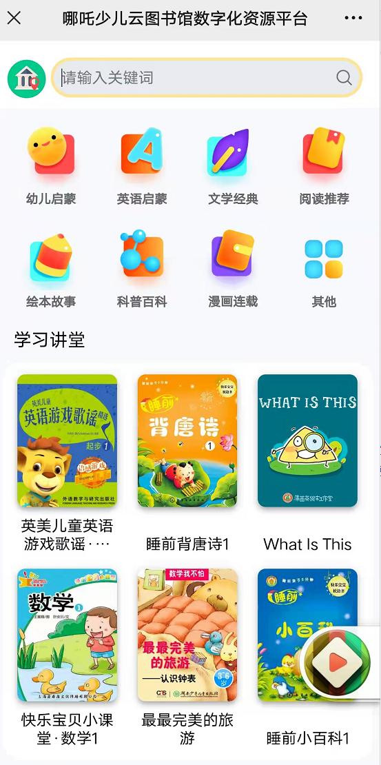38000册优质电子图书、3000种大众期刊、10000集优质视频、1000套绘本、400门文化慕课。