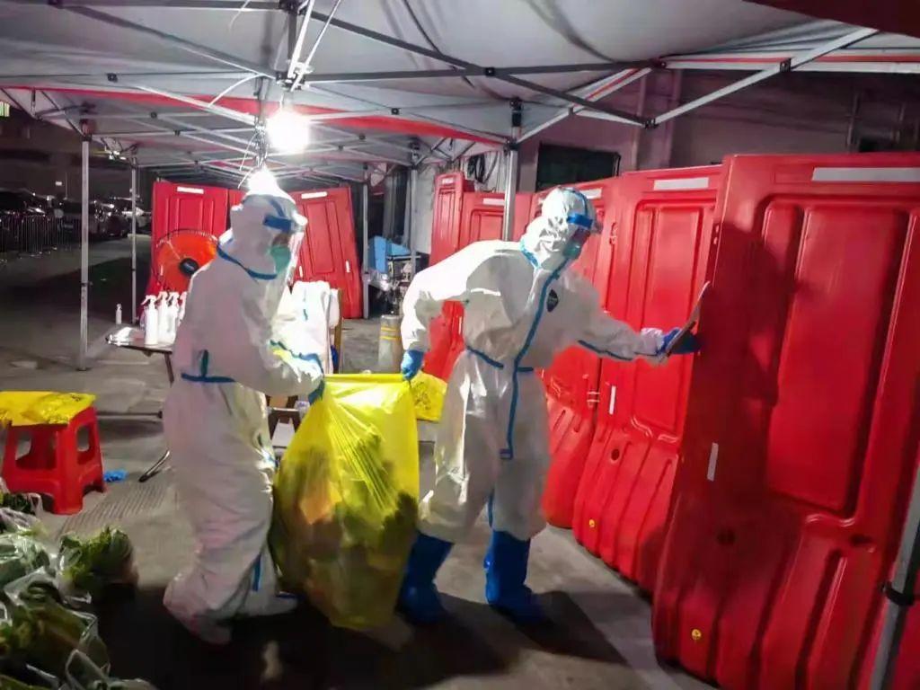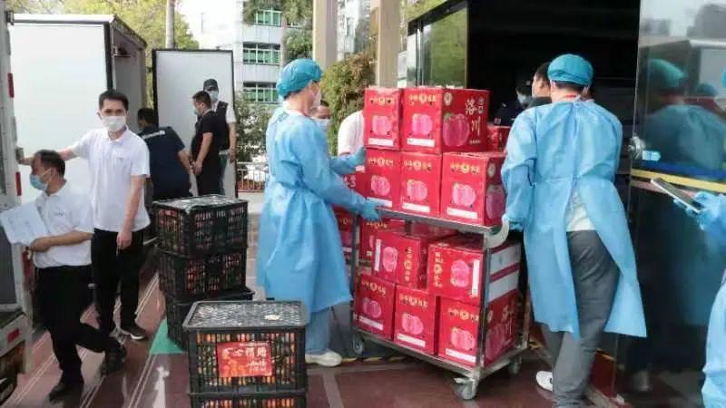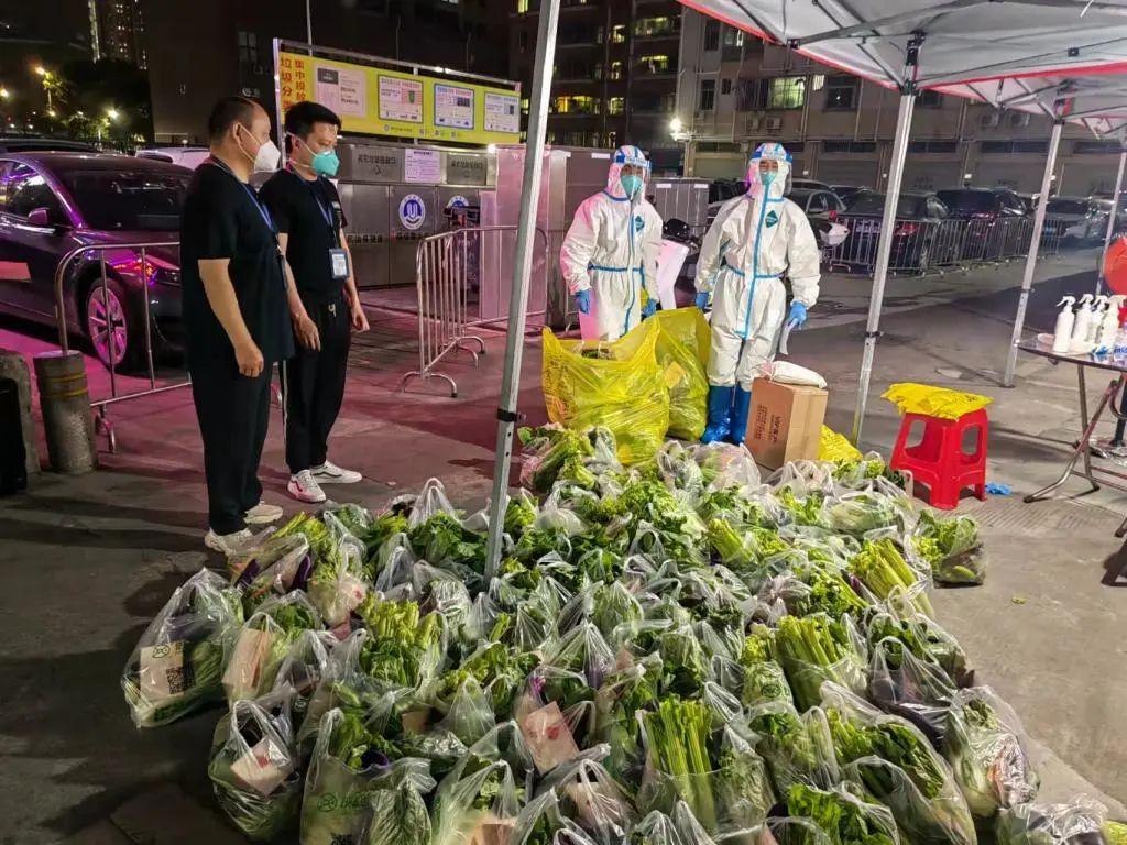 3 月 16 日下午 16 时许,满载新鲜果蔬等防疫关爱物资的 4 辆大卡车缓缓停在了龙华区民治街道政务大厅门前,50 余名工作人员迅速卸货、分装,又将 2000 多袋果蔬搬上了运往封控区、管控区的小推车上。两个小时后,这些果蔬送到了居民的手中,微信群里满屏的玫瑰花和大拇指,饱含着居民们真诚的谢意。