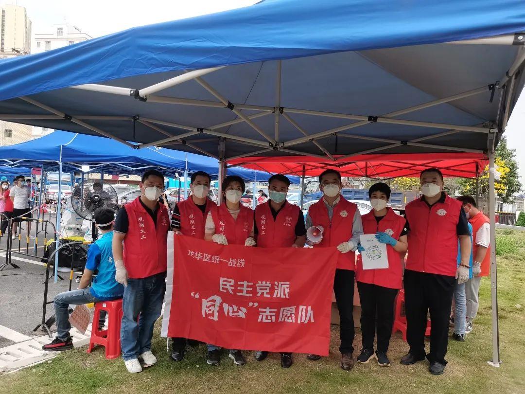 区政协副主席、民盟深圳市委常委马晓歌率领民盟龙华总支盟员,在河西新村采样点支援观湖街道观城社区核酸采样工作。