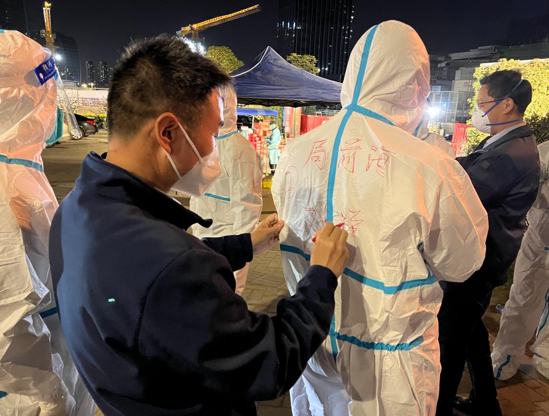 不能回家陪伴家人孩子、每天为“省”出打盹休息的时间只吃两顿饭、见过前海湾花园凌晨的全部时段……不畏艰险,不舍昼夜,前海的党旗在前海湾花园防疫前线高高飘扬。