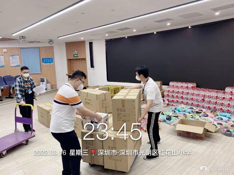 光明区应急管理局调配了一批应急物资,保障骑手生活所需;