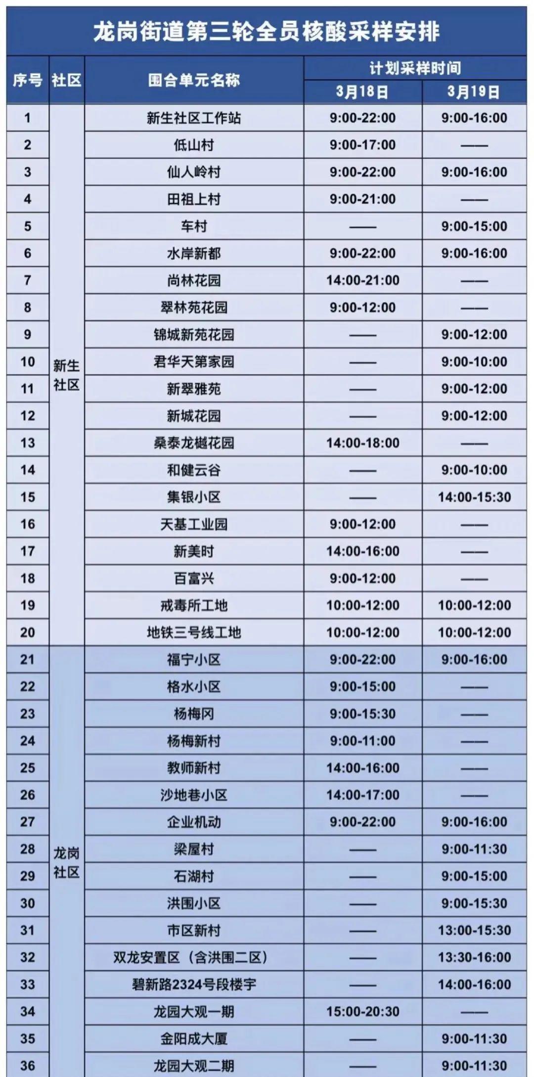 3月18日0时后,未做核酸检测的龙岗街道全体居民,所有人应检必检。
