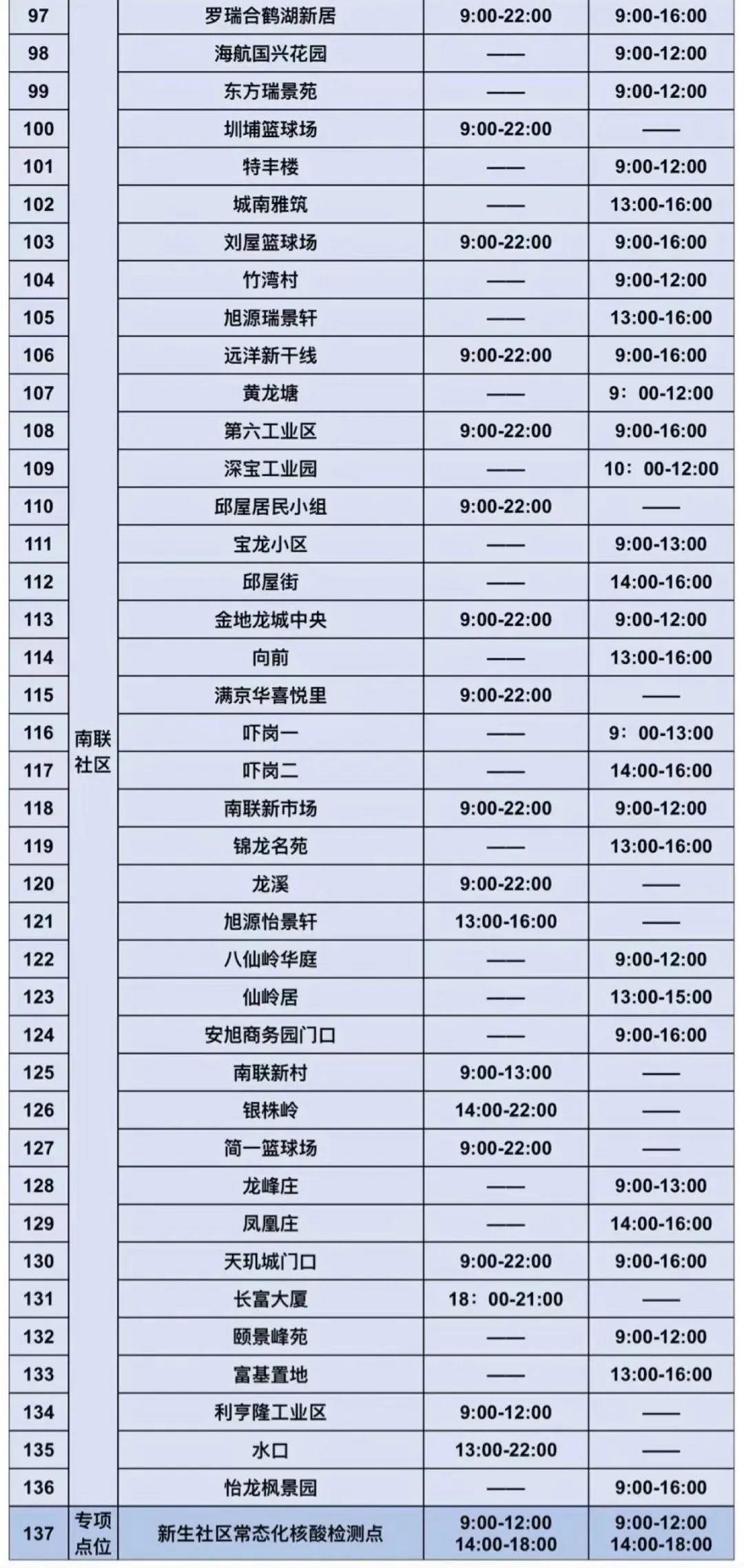✔南联社区,未居住在花园小区/城中村的居民,持粤康码绿码,可就近前往安旭商务园、第六工业区、天玑城广场采样点,进行核酸采样。