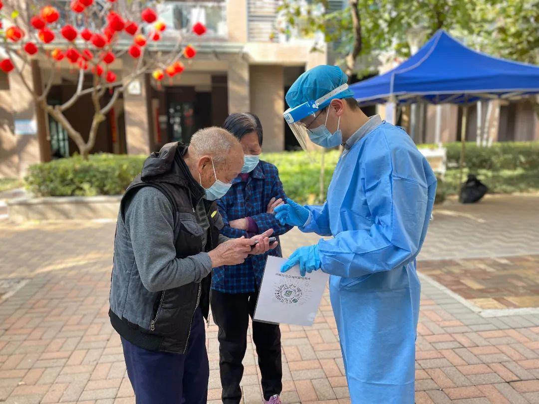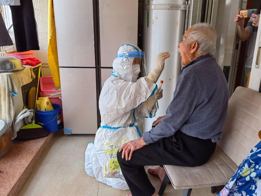 “老爷爷,您好!我是福城街道桔塘社区的党员,我们现在带领医护人员给您进行核酸采样,您在家里坐着就行,我们过去……”李爷爷年过85岁,行动不便,视力也不大好,于是社区党员干部、网格员及医护人员主动上门为老人家进行核酸采样,整个过程不到三分钟。“辖区独居老人或高龄、行动不便的老人不少,有些没有手机,有些听不清,这些都需要我们关注到,把核酸检测服务送到家里。”网格员赖宋辉说道。
