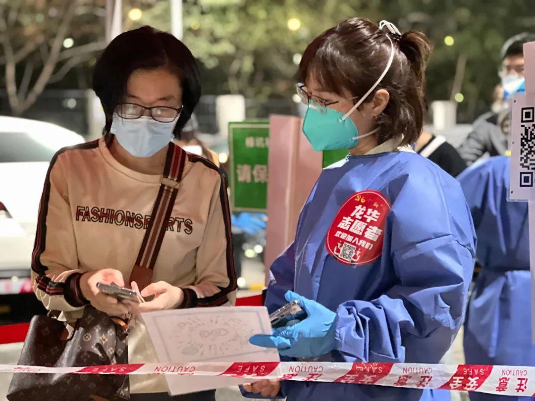 核酸采样点秩序维护,健康码查验、场地消杀、体温测量、信息录入、防疫知识宣传、分发防疫物资……一次次举手投足间的细微服务,以“龙华速度”传递抗疫温度。
