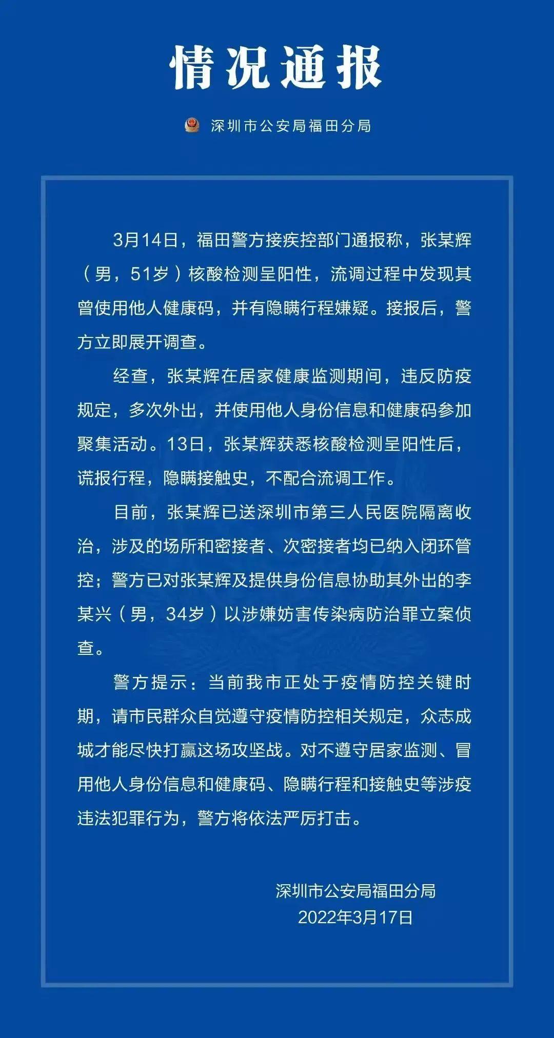 深圳一男子冒用他人健康码外出聚集!警方已立案侦查