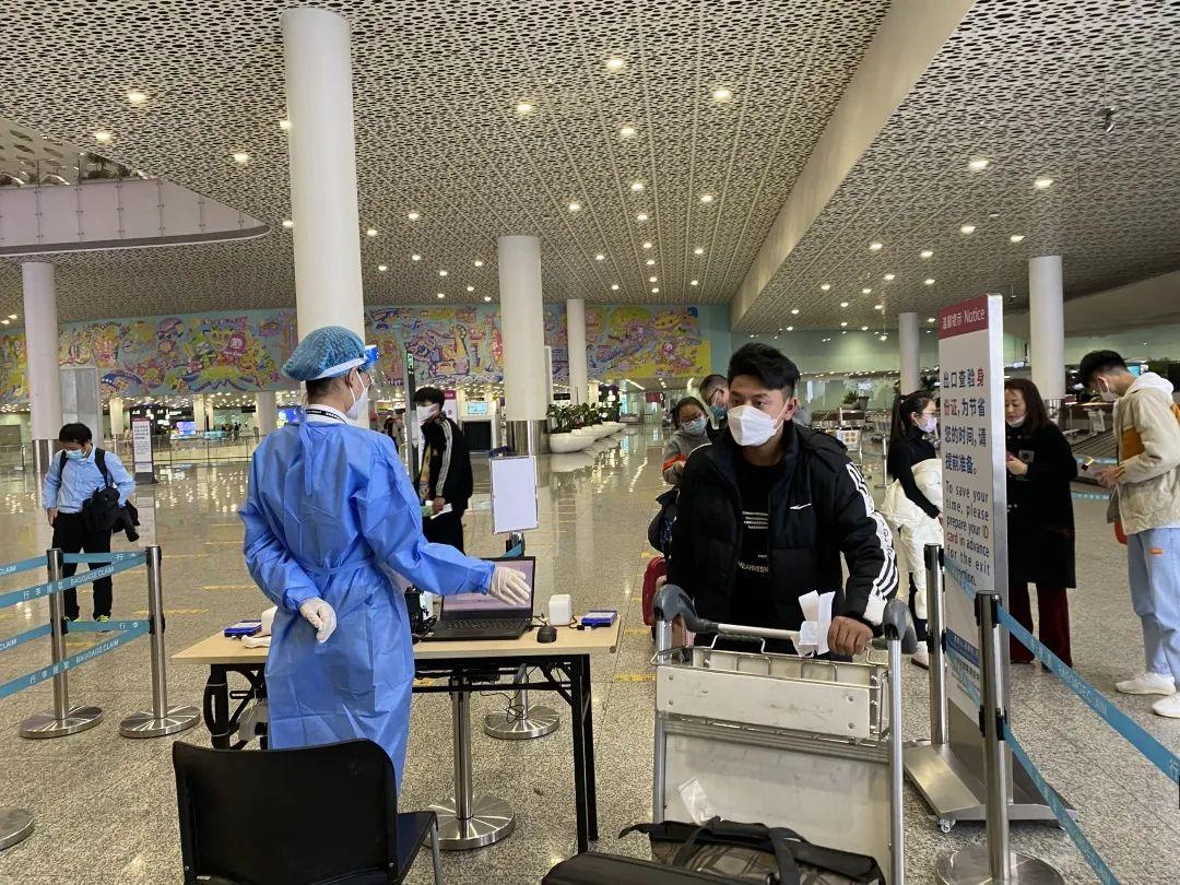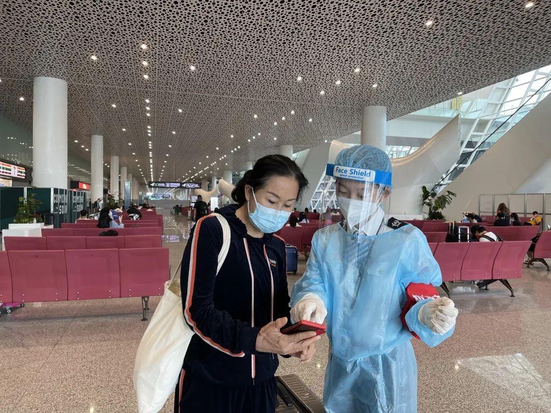 深圳机场严格落实防疫要求,对所有人员进入航站楼查验24小时核酸检测阴性证明及“粤康码”绿码。