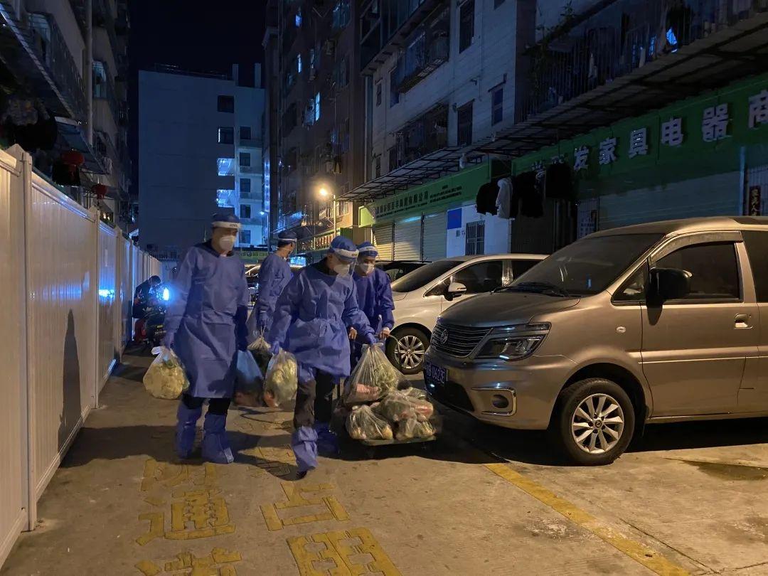 3月7日晚上7点,邱蜀钧接到电话通知:7000多份爱心物资正在送往黄贝岭上村,请安排人配送上门。1个小时后,这批来自黄贝街道党工委、黄贝岭靖轩股份公司的物资抵达,百余名临时配送员也已到位,其中有党员志愿者,有本地村民,还有热心的通川籍老乡,大家马不停蹄地将物资送到有需要的居民家门口。“感谢志愿者,你们辛苦了!”“为街道党工委和靖轩股份公司点赞!”“感谢政府让我们吃上新鲜蔬菜”……一声声关切的问候和感谢的话语,温暖着黄贝岭的夜。