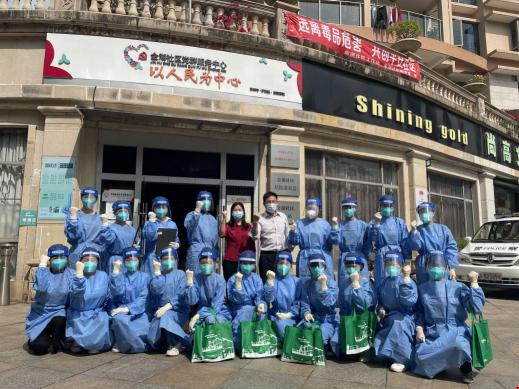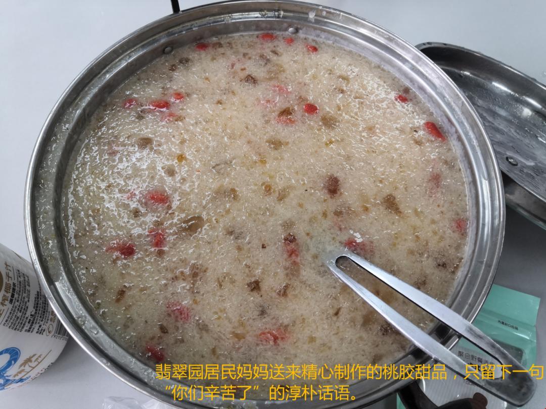 志愿者们的无私奉献,居民们看在眼里、记在心里。测核酸排队时的一声“谢谢”,一个微笑的眼神都是对志愿者们的激励。在社区,总能看到热心的居民、商户送来奶茶、糖水、水果,他们总是悄悄地把东西放下便离开,工作人员都来不及问他们的姓名。还有一些居民在微信群里为志愿者们加油打气,号召更多的居民支持和参与防疫工作。