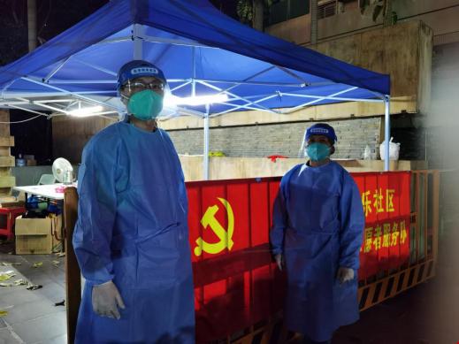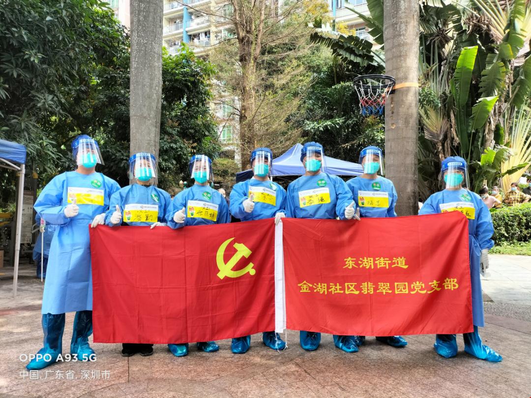 这些天,由金湖社区翡翠园党支部书记带队,每日带领小区支部党员参与社区核酸检测工作和扫楼工作,筑牢社区防疫线。