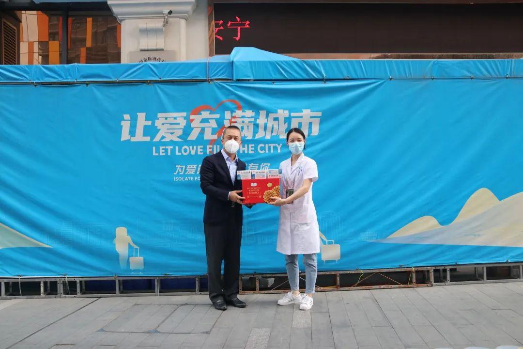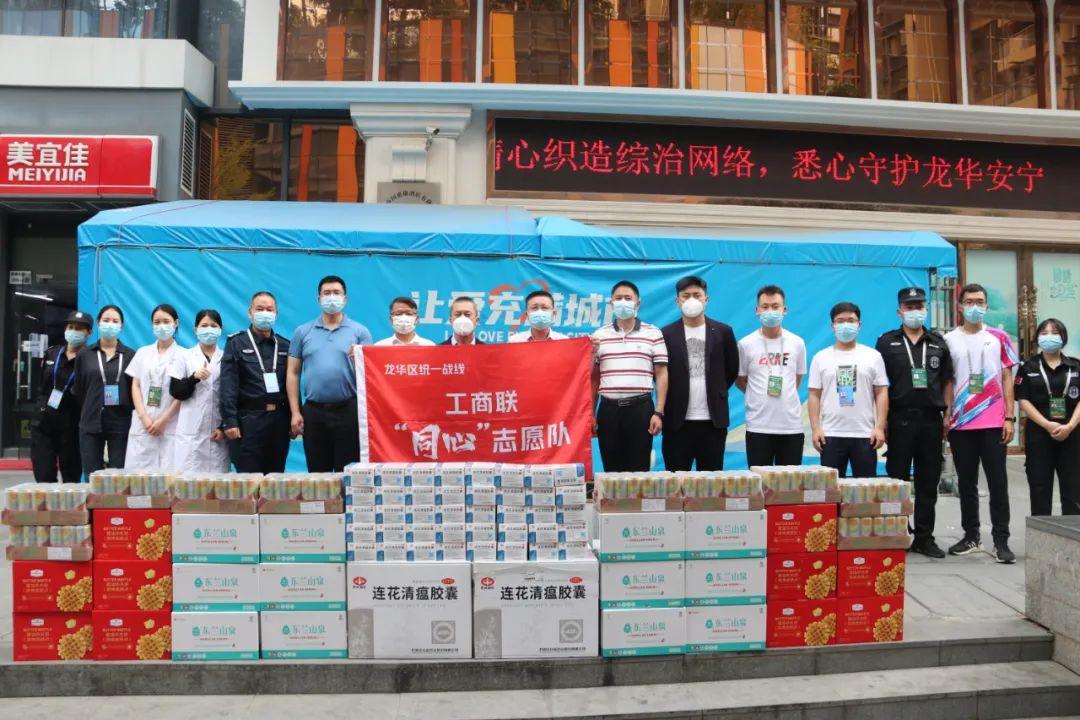 目前,全市疫情防控形势严峻复杂,在一线参与疫情防控的工作人员和广大医务工作者奋不顾身,冲锋在前,为抗击疫情做出自己最大的奉献。3月18日上午,龙华区统一战线区工商联(总商会)“同心”志愿队和区工商联(总商会)党委“同心”志愿队向隔离酒店观澜维也纳国际酒店捐赠了莲花清瘟胶囊、饮用水、应急食品等千余件物资,以慰问坚守在抗疫一线的医护人员、志愿者们。