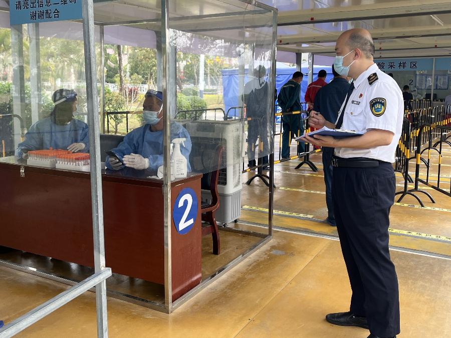 3月14日以来,大鹏卫监共出动执法车辆74辆次,出动卫生监督员180人次,督导检查核酸采样点53处,对于检查中发现的问题,执法人员现场责令整改,要求各采样点规范功能区设置,严格规范操作流程,严格落实个人防护、样本收集转运、医废处置、场所消杀等防控要求,确保核酸检测工作安全有序开展。