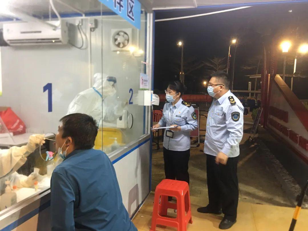 按照“标准化、规范化、均衡化、常态化、科学化”要求,卫生监督员按片区分组,采取“白+黑”方式,全方位督查各采样点,重点查看采样点是否规范分区设置,采样操作流程是否明确规范,工作人员操作是否规范,并督促工作人员规范防护,加强现场秩序引导,确保采样流程规范合理,筑牢核酸检测的院感防线。