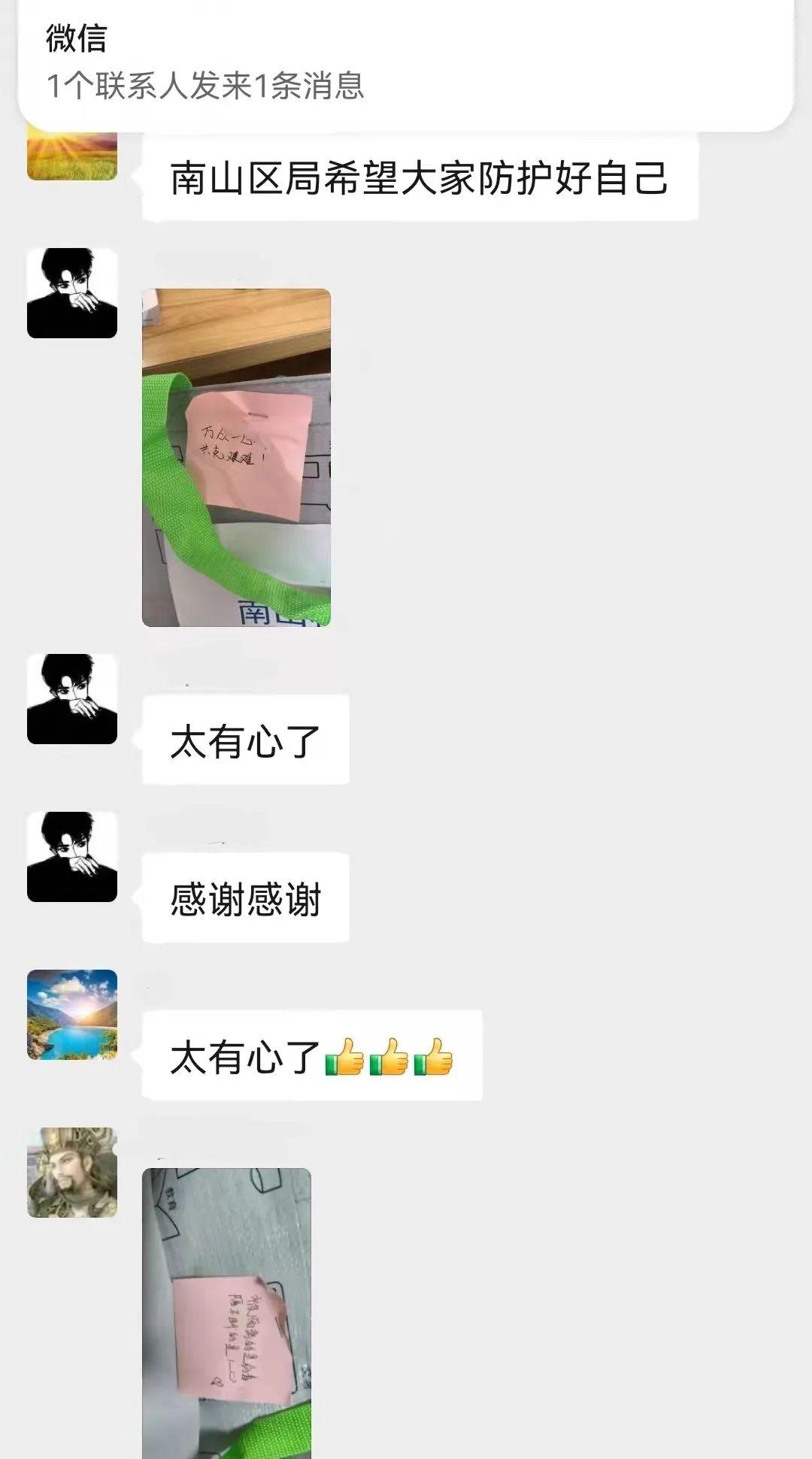 脚步放慢,真情不断。在这个疫情防控的关键时期,南山区税务局党委时刻牵挂着在“疫”线默默奉献的战疫志愿者们和因封控、管控原因居家办公的干部职工们,通过赠送战疫物资、慰问关怀等多种形式关心支持在社区战疫以及居家办公的干部们,为干部职工送上最温暖的关怀、最贴心的守护、最坚实的后盾,让暖暖的关怀变为满满的战力!