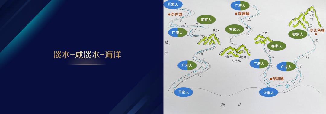 改革开放前,宝安县原住民约30万左右,主要生活着四大民系:广府人、客家人、福佬人、疍家人,他们因水而相遇,文化有了交流。我喜欢用“咸淡水文化”来形容他们。为什么呢?客家人大多居住在东中部淡水地区,广府人居住在西部咸淡水交界处,而疍家人和福佬人是居住在深圳一东一西的海岸。深圳本土这种水由淡到咸的变化,通俗地来说就是本土咸淡水的味道。