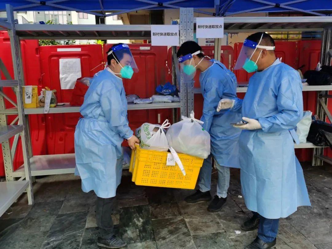 城中村被封后,外卖、快递“爆仓”般陈列在快递站,骑手志愿者们通过卡口流转接收、湾厦村内配送、电话及时通知、优先配送急需品、温馨提示等措施,至今已配送外卖、快递2300余件。