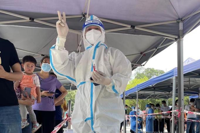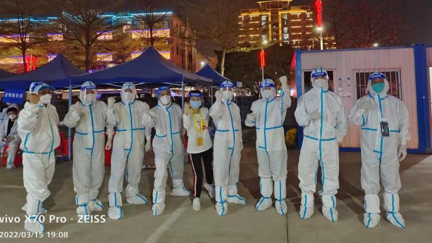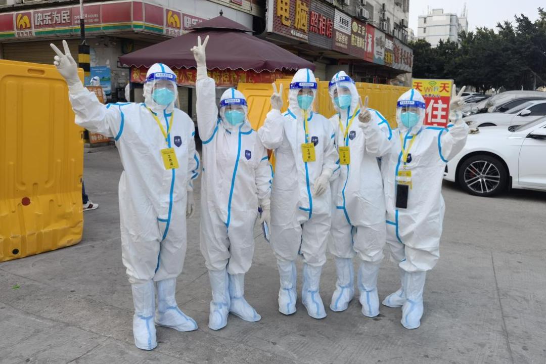 石岩实业公司全公司仅53人,除去“三区”内等不符合条件的人员,从27名符合条件的人员中抽调了18人,协助石岩、福海、燕罗、沙井等街道开展防疫工作,截至目前检测核酸10917人次,为20户居民居民配送生活用品及食物62份。