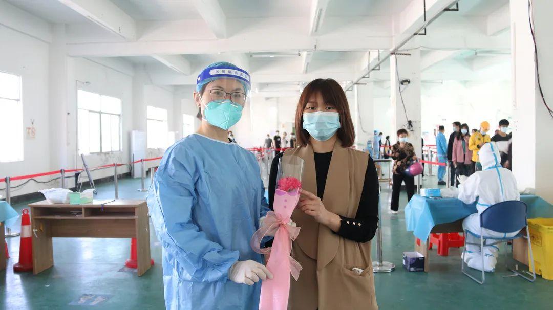 “最美的花,送给最美的你们,战疫一线的姐妹们,你们辛苦了!”小姐姐温柔地说。