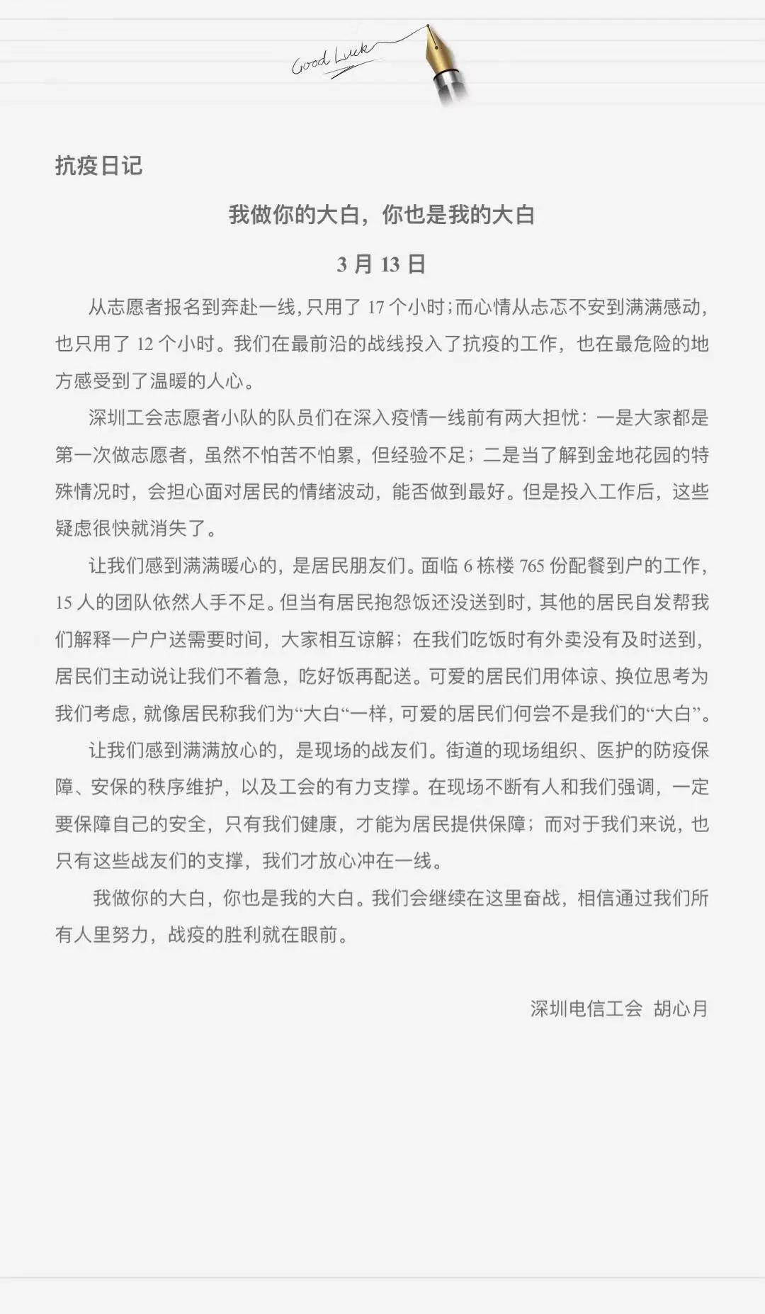 为进一步挖掘福田区疫情防控工作中涌现的感人事迹,展现一线全体人员的付出与奉献,勠力同心齐抗疫的精神。福田区总工会现诚挚邀请广大群众把所见所闻真实地记录下来。无论何种形式,只要内容积极向上,能传递抗疫的温情暖心,坚定我们共克时艰的决心,都可以投稿参与。