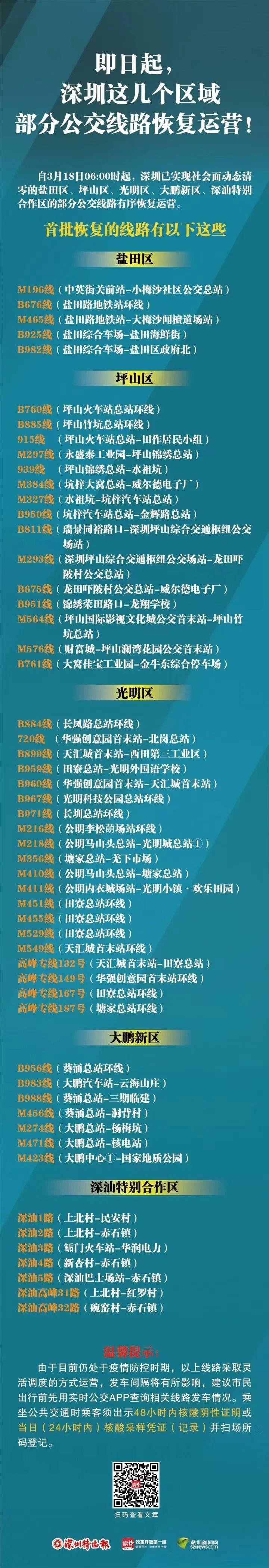 3月18日(星期五)起,盐田、坪山、光明、大鹏新区、深汕特别合作区等5个区恢复运行,市民能跨区上班吗?外卖快递能跨区送吗?户外公共活动场所开放吗?