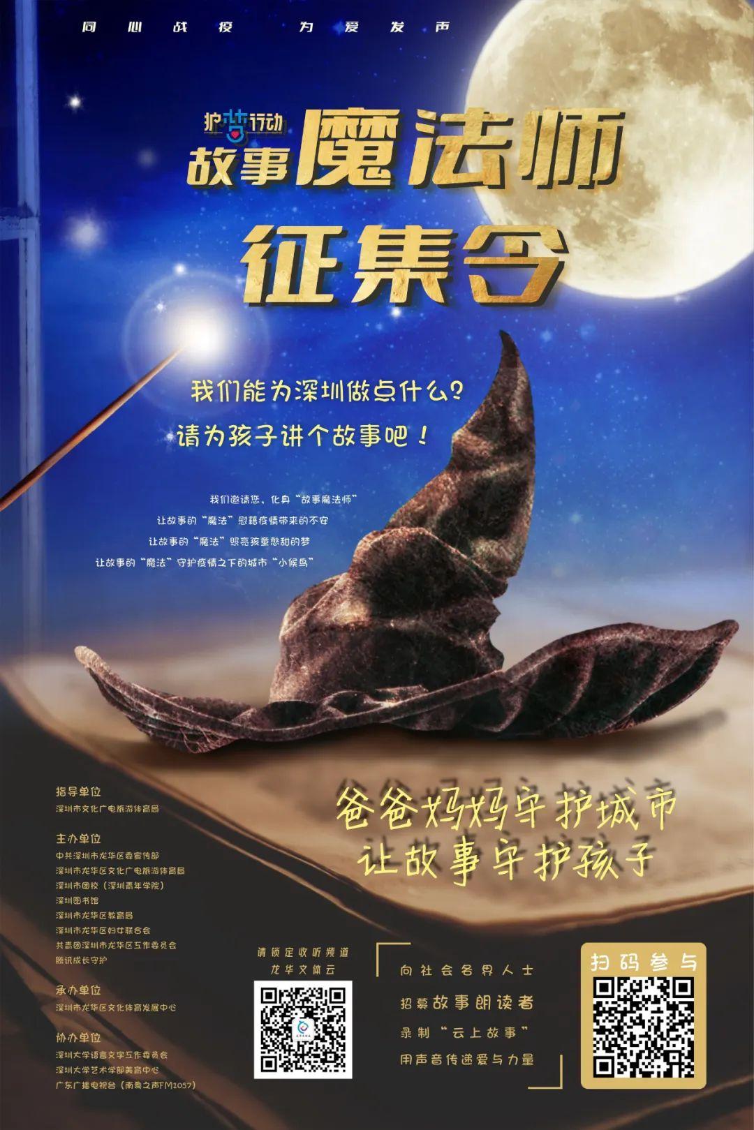 为全面落实好疫情之下的人文关怀工作,切实推进人道主义关爱精神,由深圳市文化广电旅游体育局指导,中共深圳市龙华区委宣传部、深圳市龙华区文化广电旅游体育局、深圳市团校(深圳青年学院)、深圳图书馆、深圳市龙华区教育局、深圳市龙华区妇女联合会、共青团深圳市龙华区工作委员会、腾讯成长守护联合主办,深圳市龙华区文化体育发展中心承办的“故事魔法师·护梦行动”于3月17日正式启动!