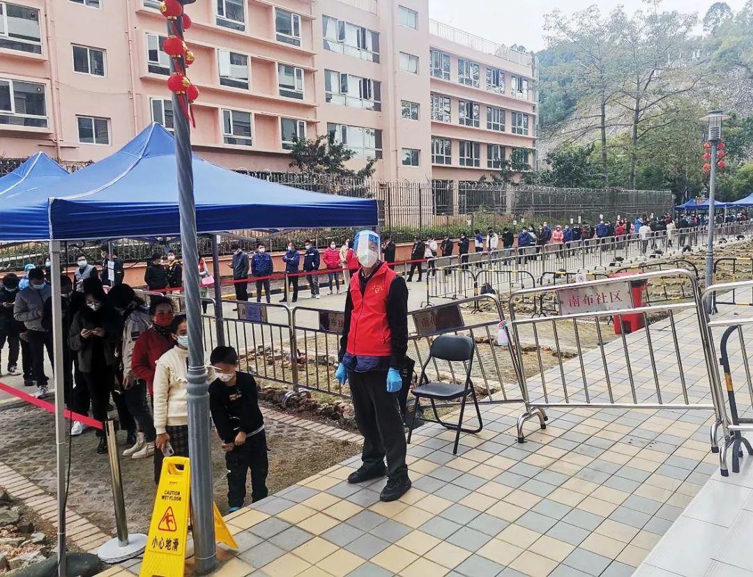“慢点走,我扶您一下……”这是义工李思琴,在南布社区负责维持检测点秩序、指导群众使用核酸码。她热心助人,遇到腿脚不便的老人,她便立马上前搀扶;见到有居民不够力气把婴儿车抬上阶梯,马上过去帮忙出力。