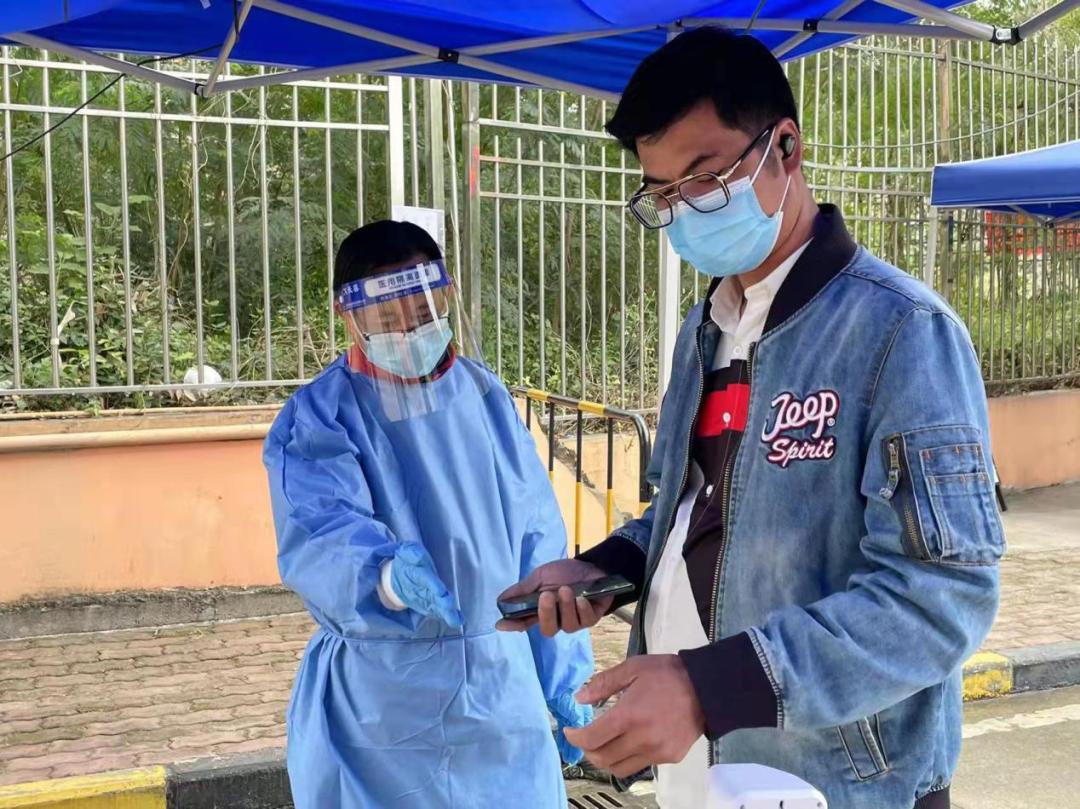90后的钟惠友充分展现了当代青年的风采,他主动延迟单位繁忙的年终结算工作,跟随长期奋战在社康一线的护士妻子的脚步,挺身而出,主动申请成为义工,奔赴在龙田街道疫情防控第一线。