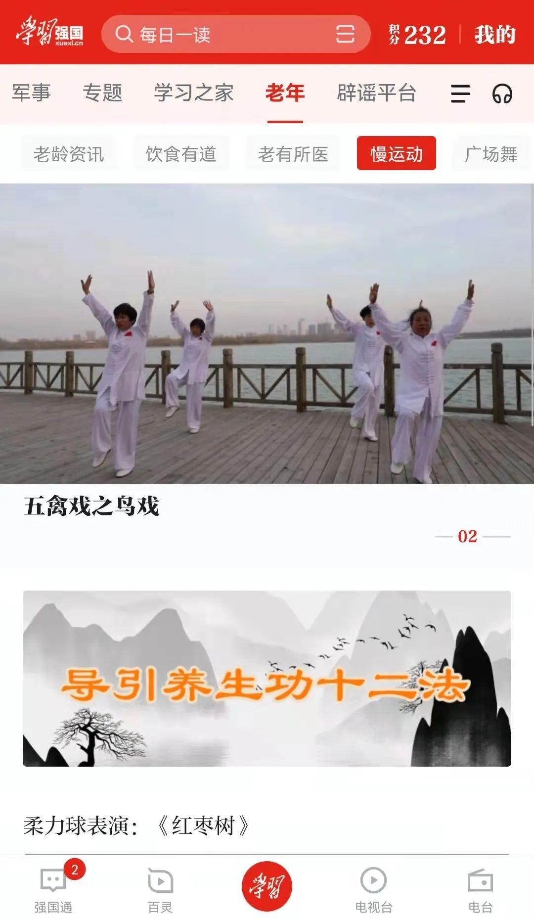 ○“慢运动”板块则为老年人推荐了一些适合他们的慢运动,包括:五禽戏、柔力球、太极(剑)等;