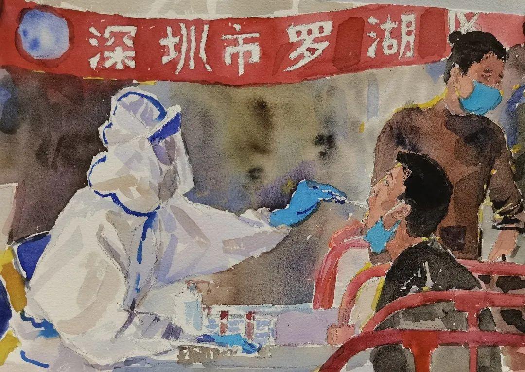 深圳市罗湖区美术家协会自今年1月以来,先后两次组织策划“以‘艺’抗疫专题美术作品”创作,涵盖国画、水彩、速写、油画等不同艺术门类,并在线上展出。美术家们以手中画笔,饱蘸心血,再现深圳人面临疫情的感人瞬间和负重前行的抗疫先锋,留下了一幅幅感人的时代画面。