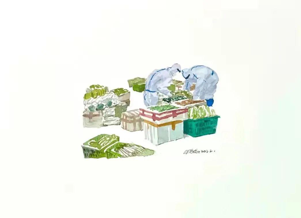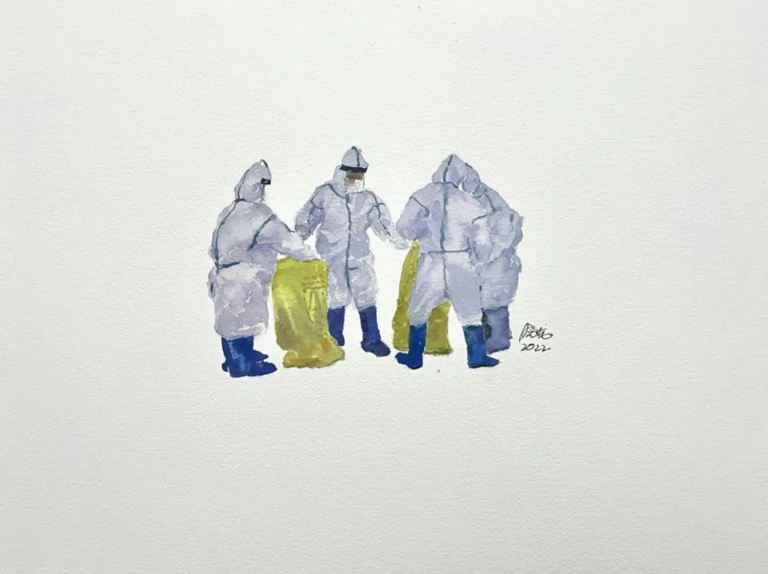 《抗疫行动二》 / 陈跃刚。 18×26cm, 纸本水彩