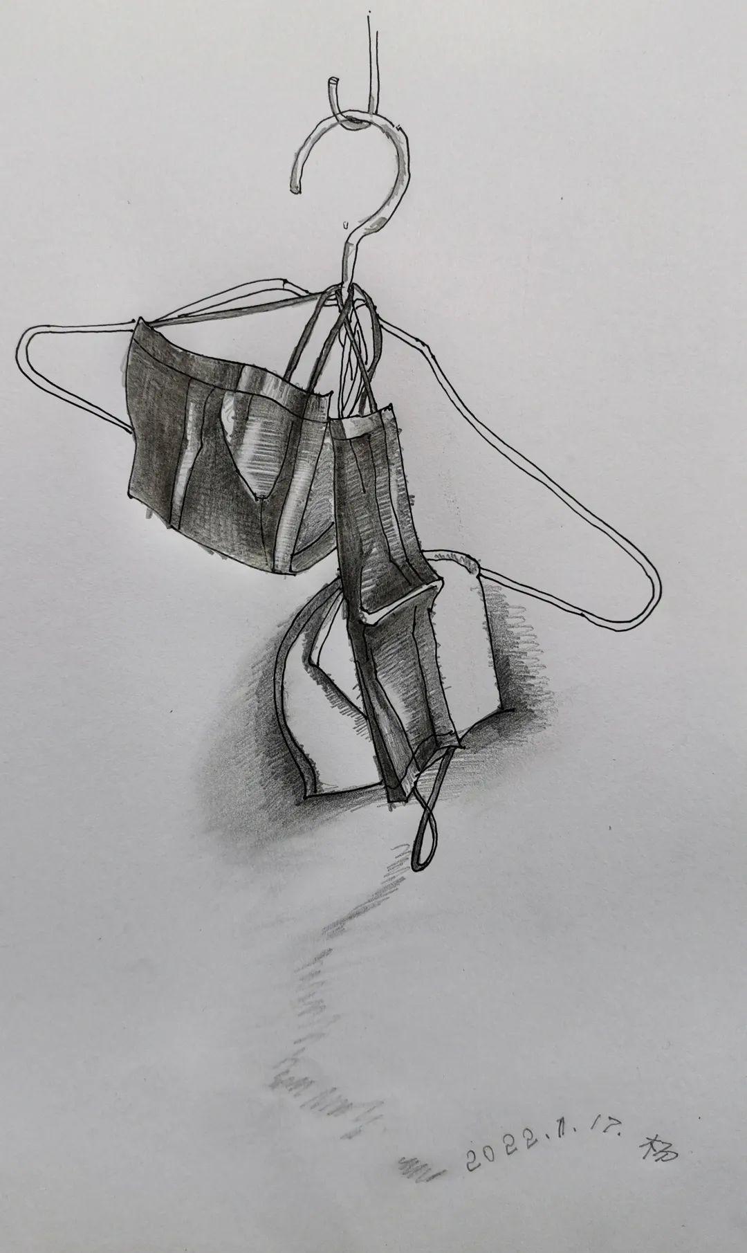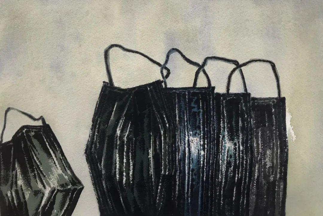 《我的口罩系列》 / 詹皇鑫。 21×15cm, 纸本水彩