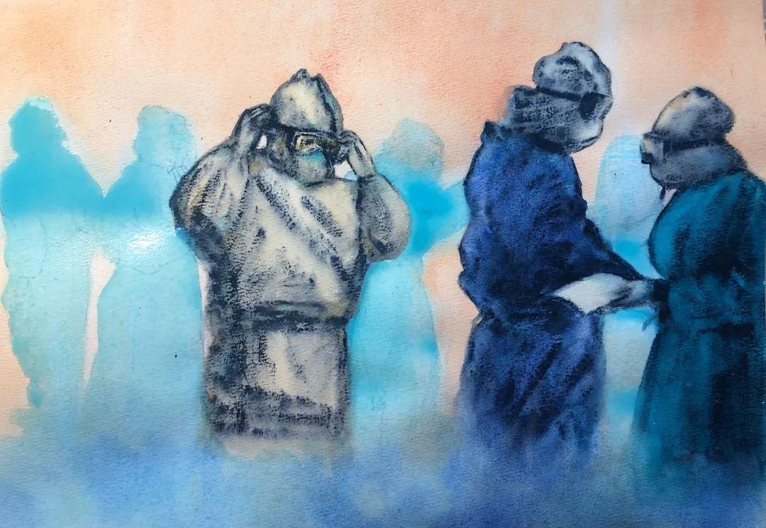 《逆行者》 / 曹晓薇。 23×31cm, 水彩