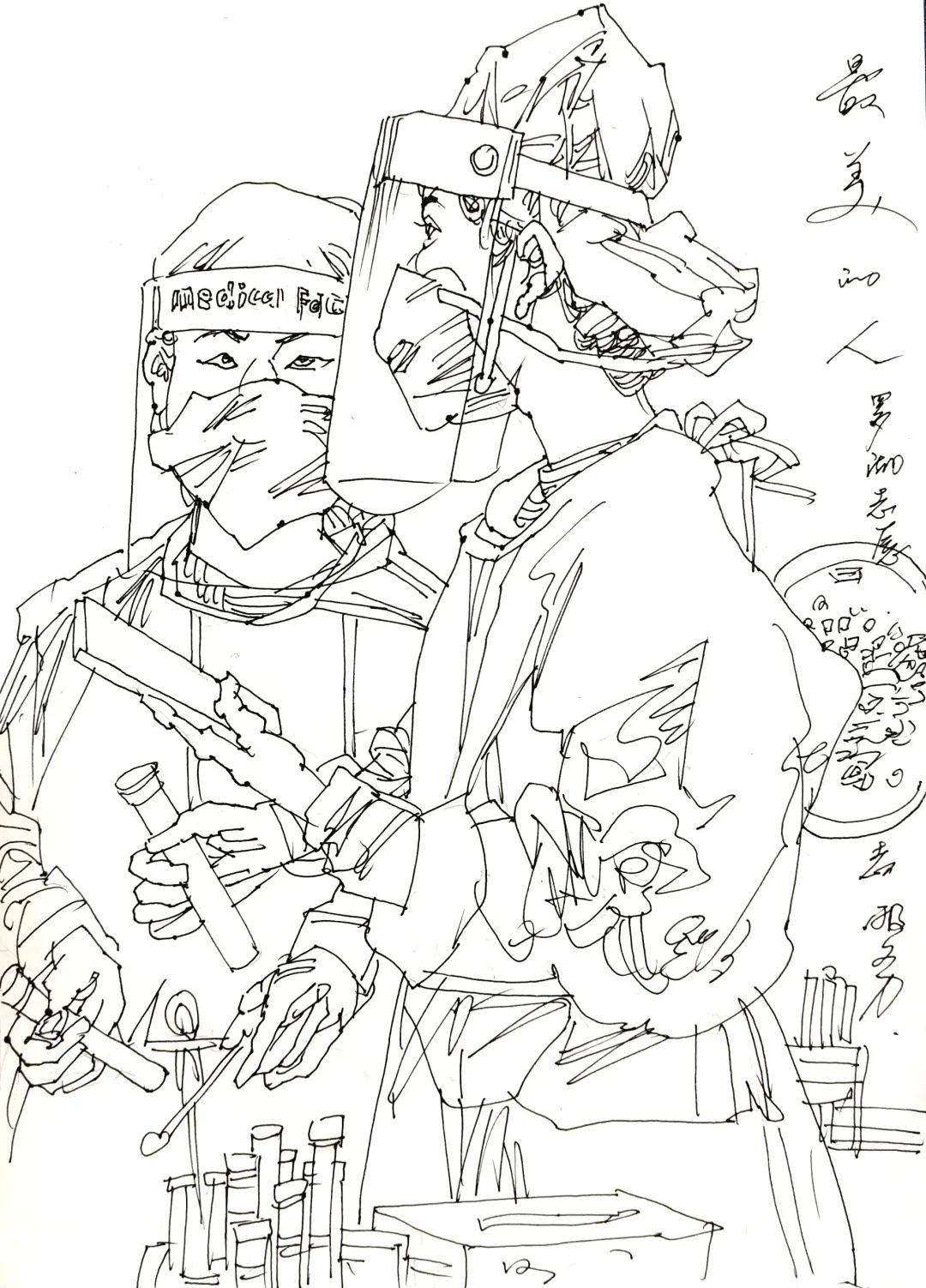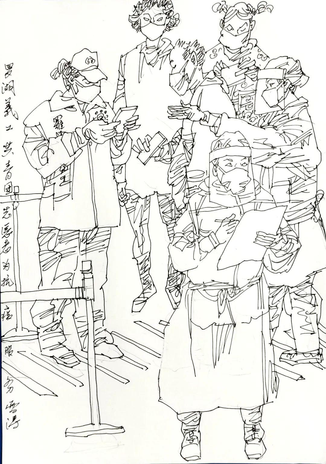 《最美的人——罗湖志愿者》 / 王雪涛。 29.7×21cm, 速写