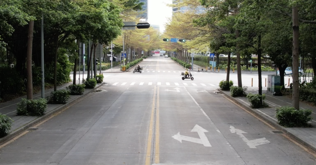 再去附近的车公庙转转,繁华的商业氛围与市井的生活气息都悄然藏匿。人流稀少的街道,偶尔会有步履匆匆的外卖小哥,远去的背影和疾驰的风,构成了此刻城市的烟火气。