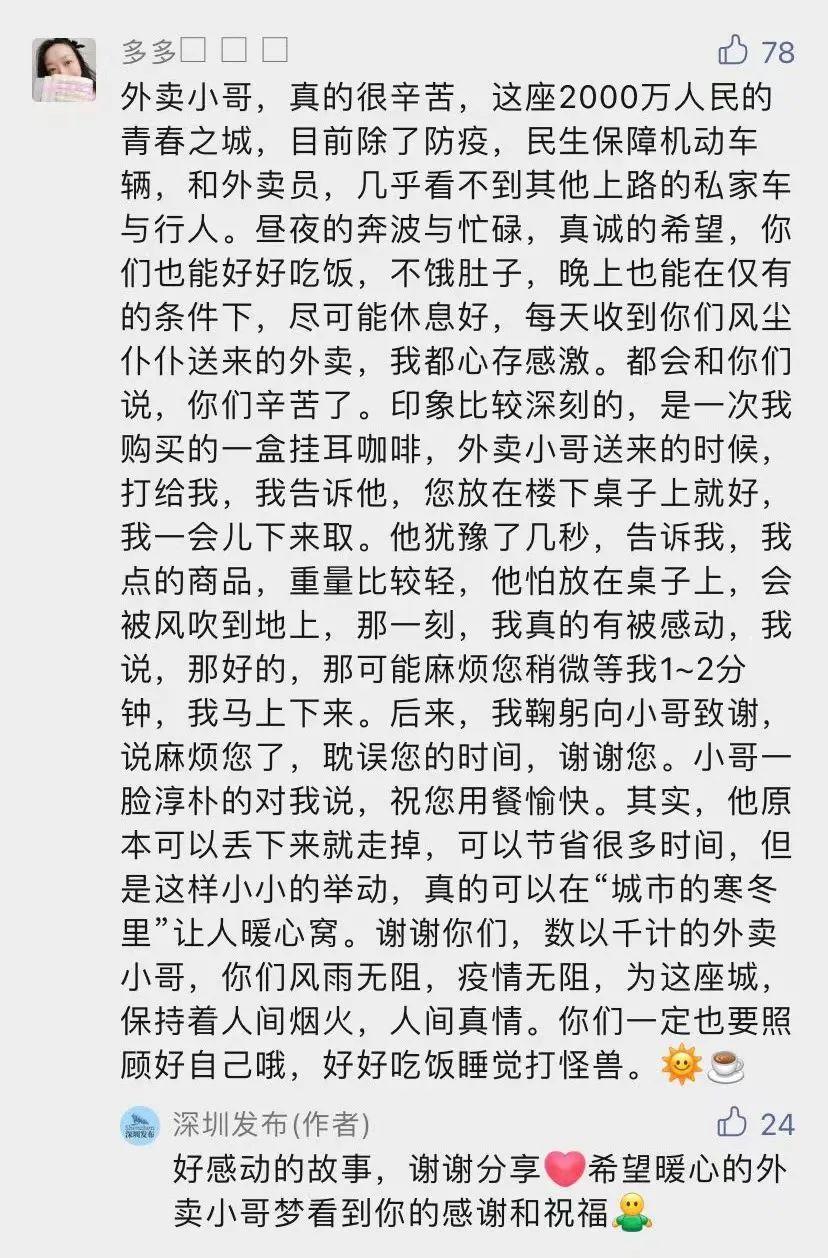 在疫情期间,看到外卖小哥的辛苦付出,深圳人也用不同的方式,表达对他们的感激。