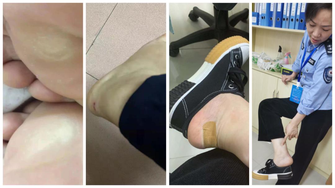 网格员刘勇、荣彩红等因长时间行走,脚都受伤、起泡。