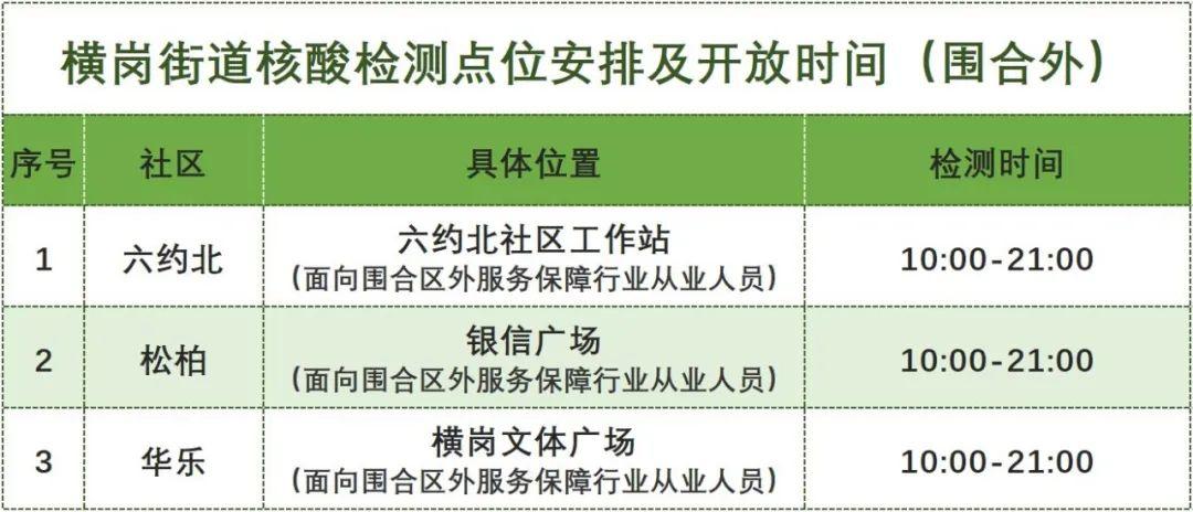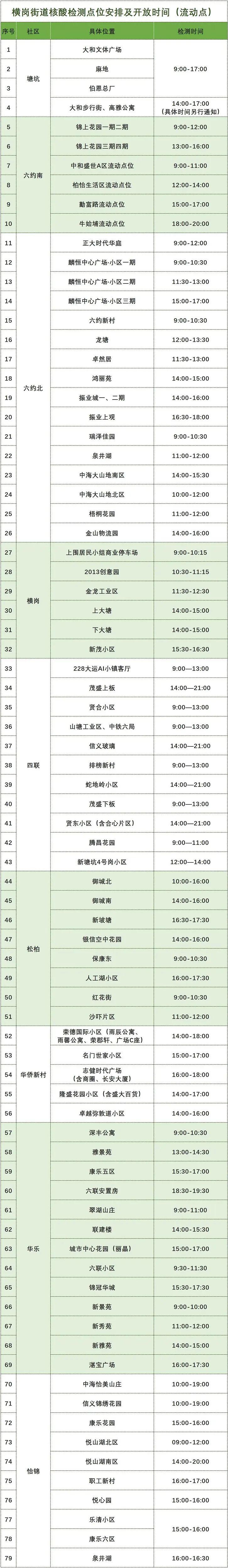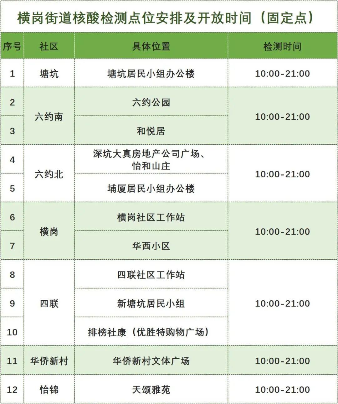 今天上午9时开始,横岗街道设置94个核酸采样点,请还未完成“7天3检”的居民抓紧时间核酸检测。3月14日-20日未完成3次检测的,“社会静默期”结束后社区小区卡口一律不予放行。